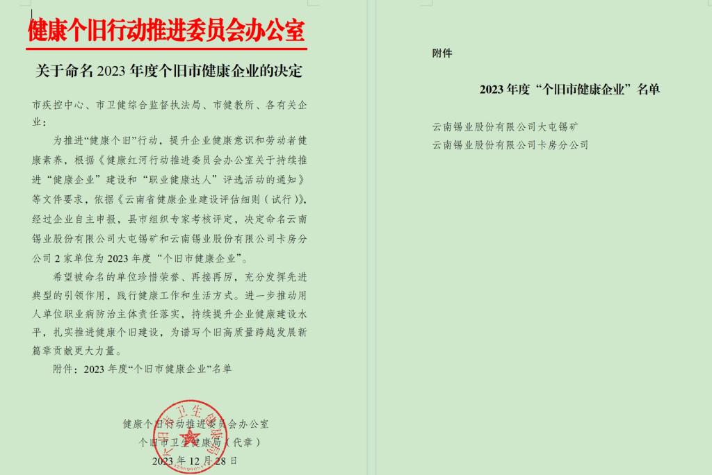 ¿ËÈÕ£¬2023Äê¶È¡°¸ö¾ÉÊпµ½¡ÆóÒµ¡±Ãûµ¥½ÒÏþ£¬´Ë´ÎÆÀÑ¡¸ö¾ÉÊÐÈ«ÊнöÓÐÔÆÎý´óÍÍÎý¿ó¡¢¿¨·¿·Ö¹«Ë¾2¼Òµ¥Î»ÈÙ»ñ´ËÊâÈÙ¡£
