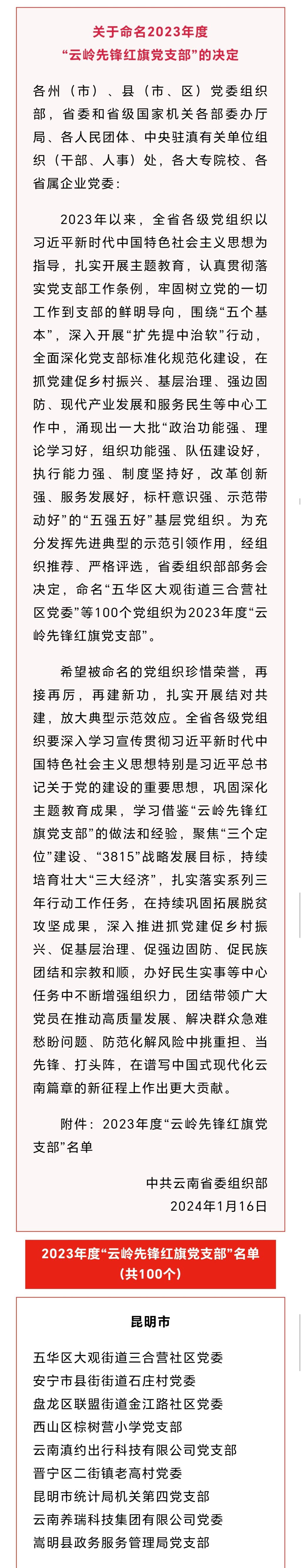 克日,中共云南省委组织部宣布了《关于命名2023年度“云岭先锋红旗党支部”的决议》,华联锌铟公司新田选矿车间党支部榜上著名。
