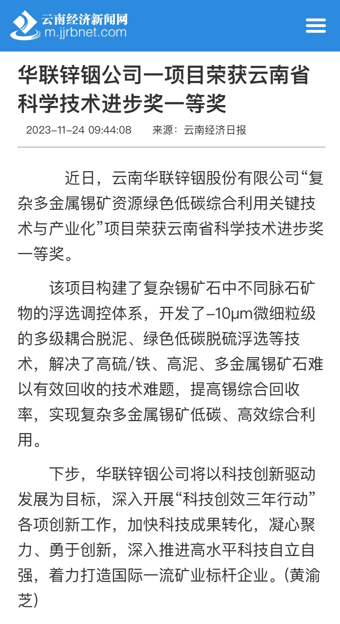 ÔÆÄϾ­¼ÃÈÕ±¨£º»ªÁªÐ¿î÷¹«Ë¾Ò»ÏîÄ¿ÈÙ»ñÔÆÄÏÊ¡¿ÆÑ§ÊÖÒÕǰ½ø½±Ò»µÈ½±